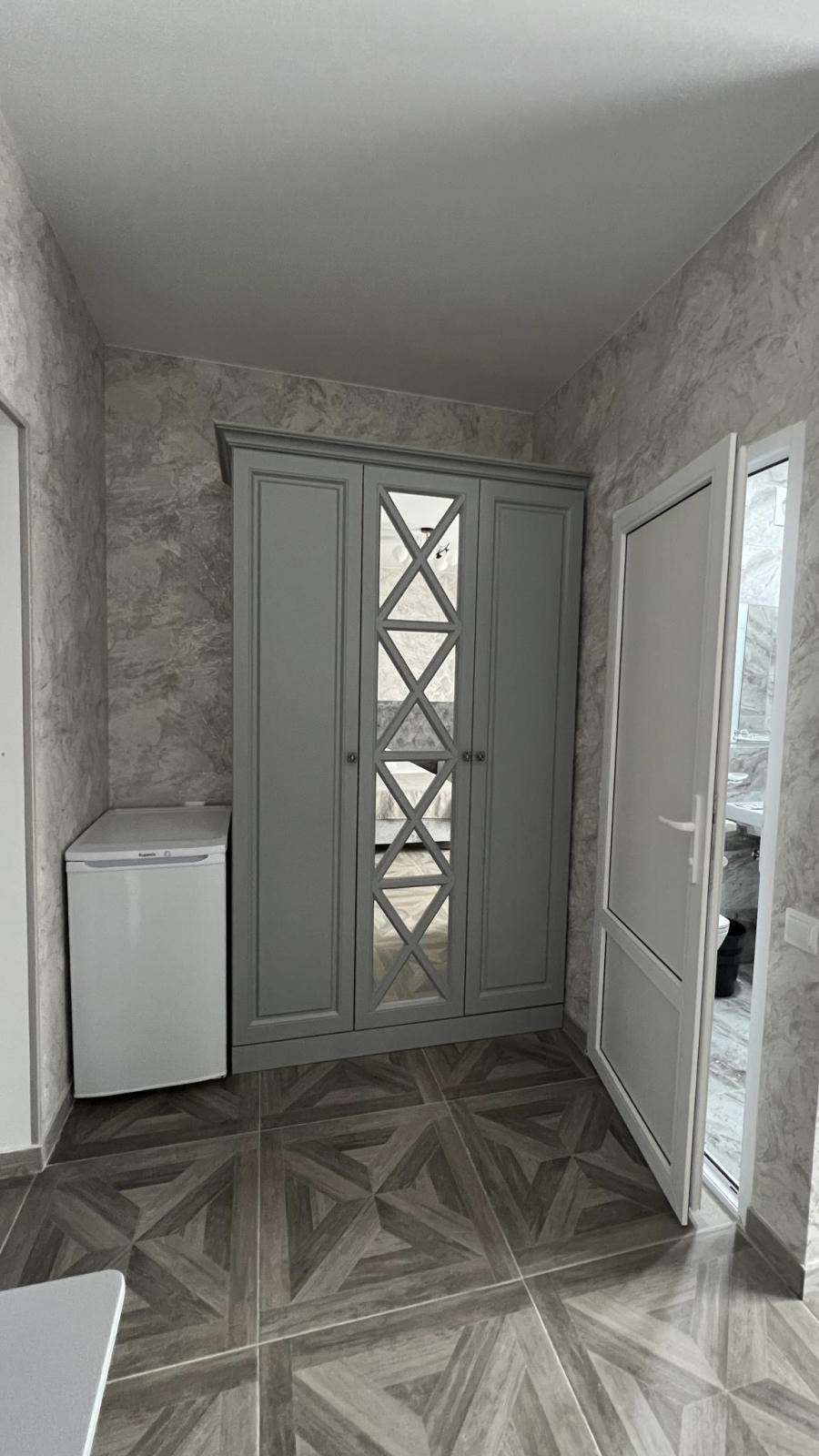 Двухместные номера с широкой двуспальной кроватью. В номере есть туалетный стол, зеркало, чайная посуда, шкаф, сейф, холодильник и ЖК телевизор. Индивидуальный санузел оборудован душем. В стоимость номера входит бесплатный Wi-Fi.