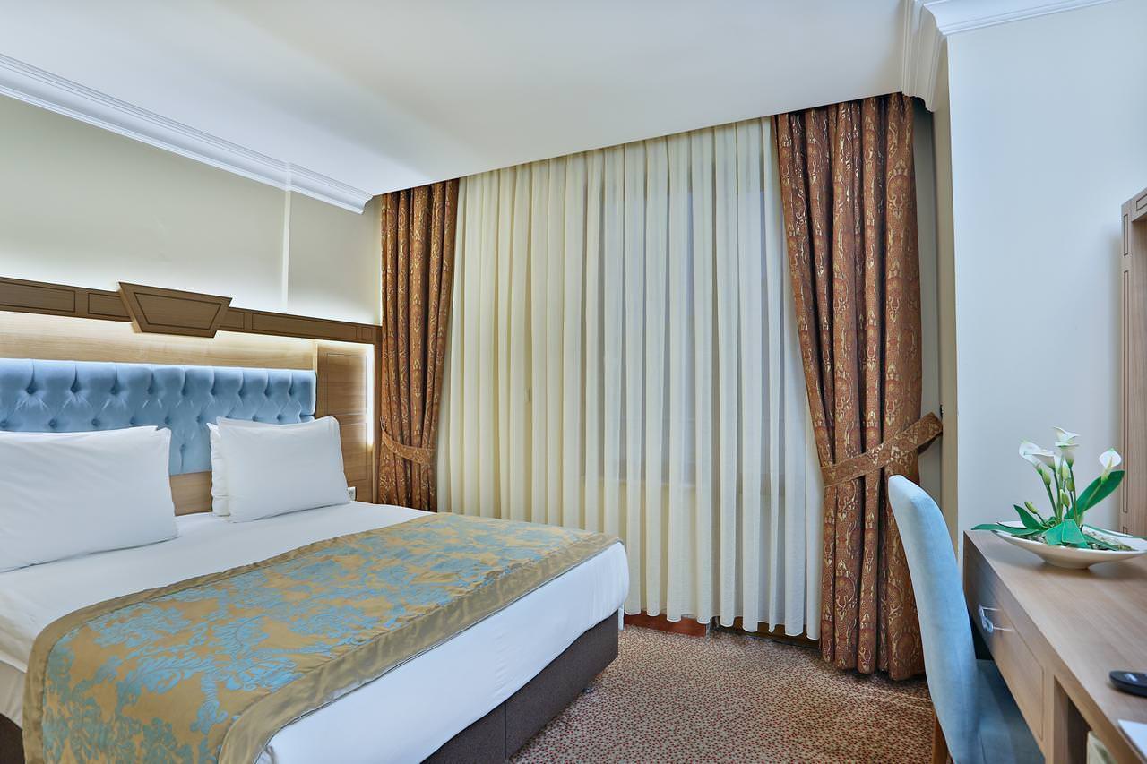Двухместные номера с комфортной широкой двуспальной кроватью. В номере есть раскладное кресло, туалетный стол, зеркало, чайная посуда, шкаф, сейф, холодильник и ЖК телевизор. Индивидуальный санузел оборудован душем. В стоимость номера входит бесплатный Wi-Fi.